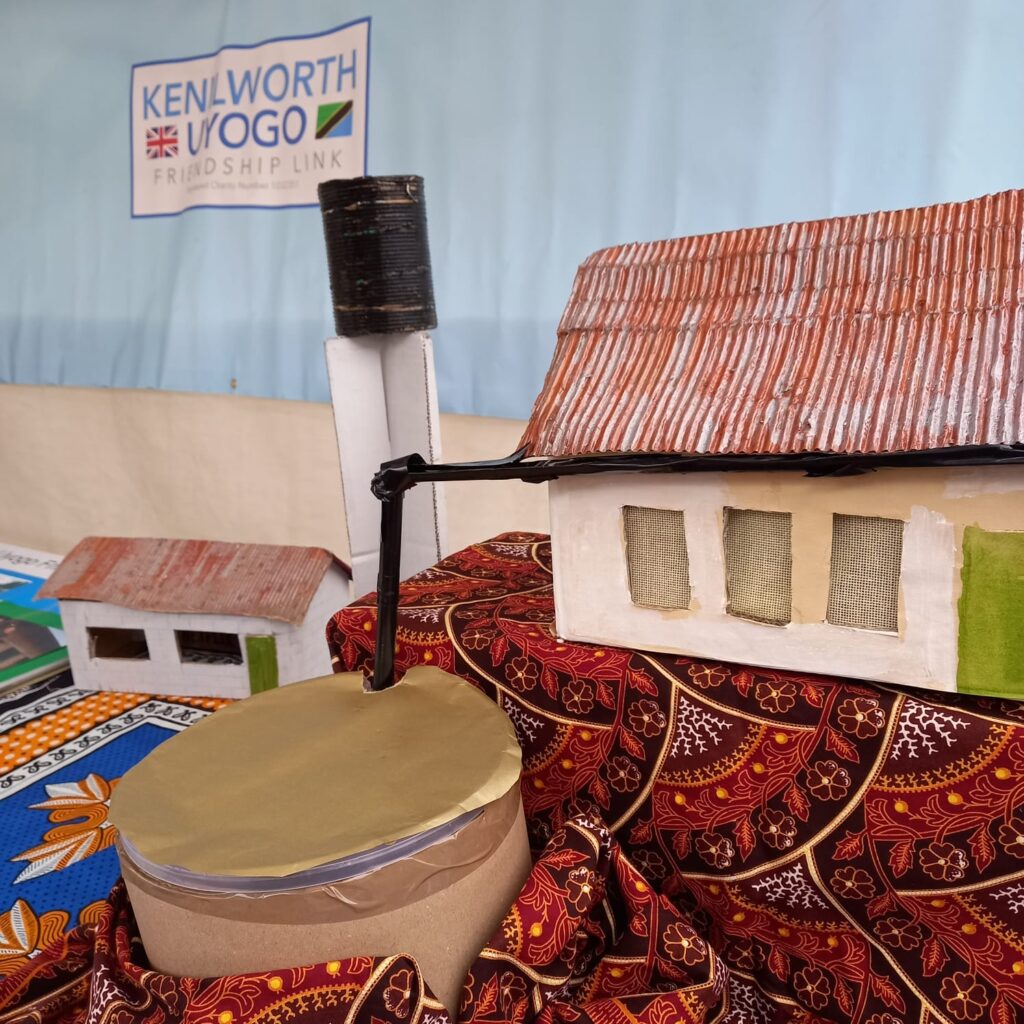 Jane and Roger had updated the models of buildings with the Uyogo village to incorporate working guttering to feed a rainwater harvesting tank. The day was quite mild with only a few very minor rain showers, so the water to be harvested was supplied from a jug.